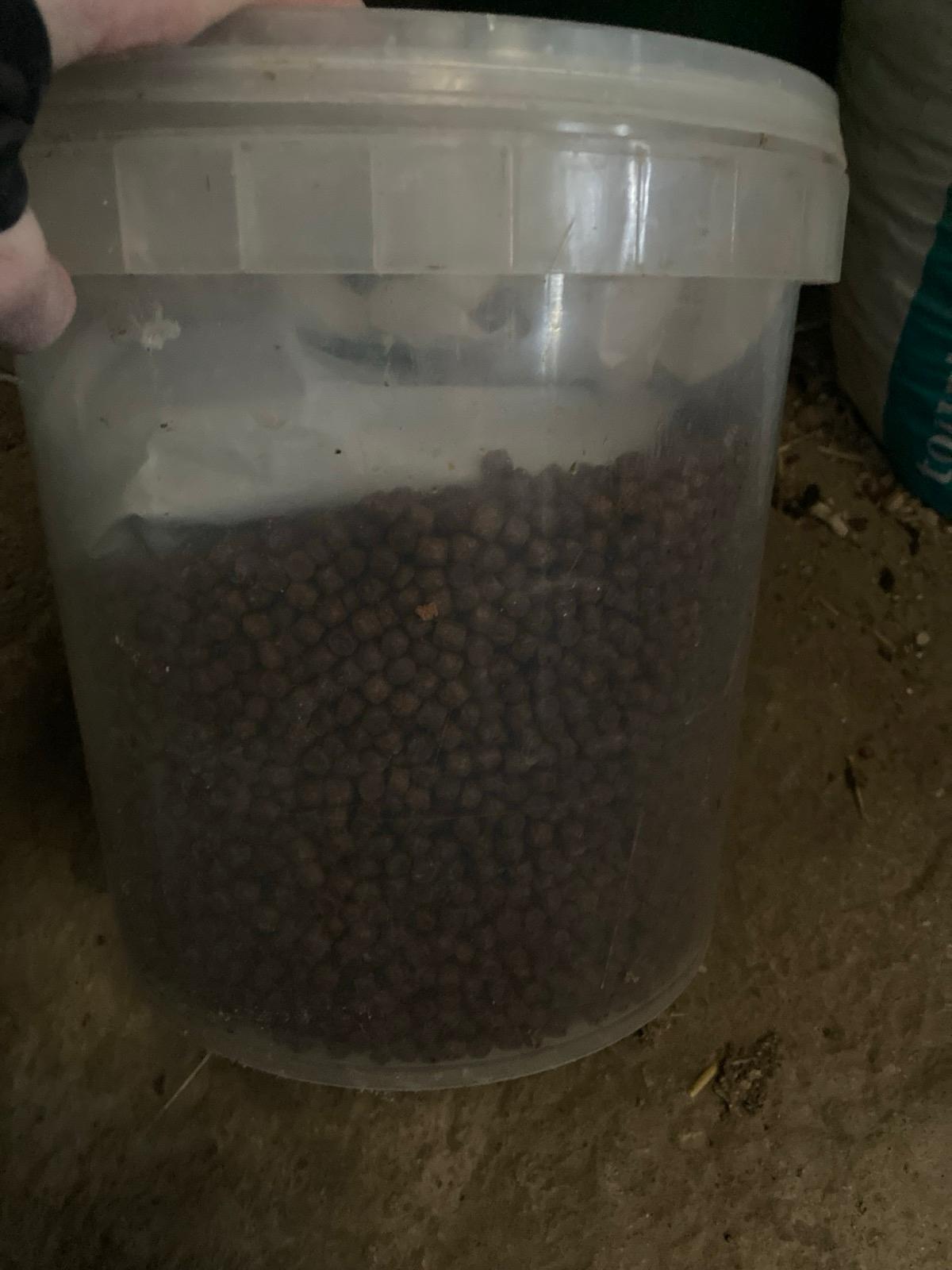 donne 2 seaux aliments pour truite et 1 sachet pour alevin