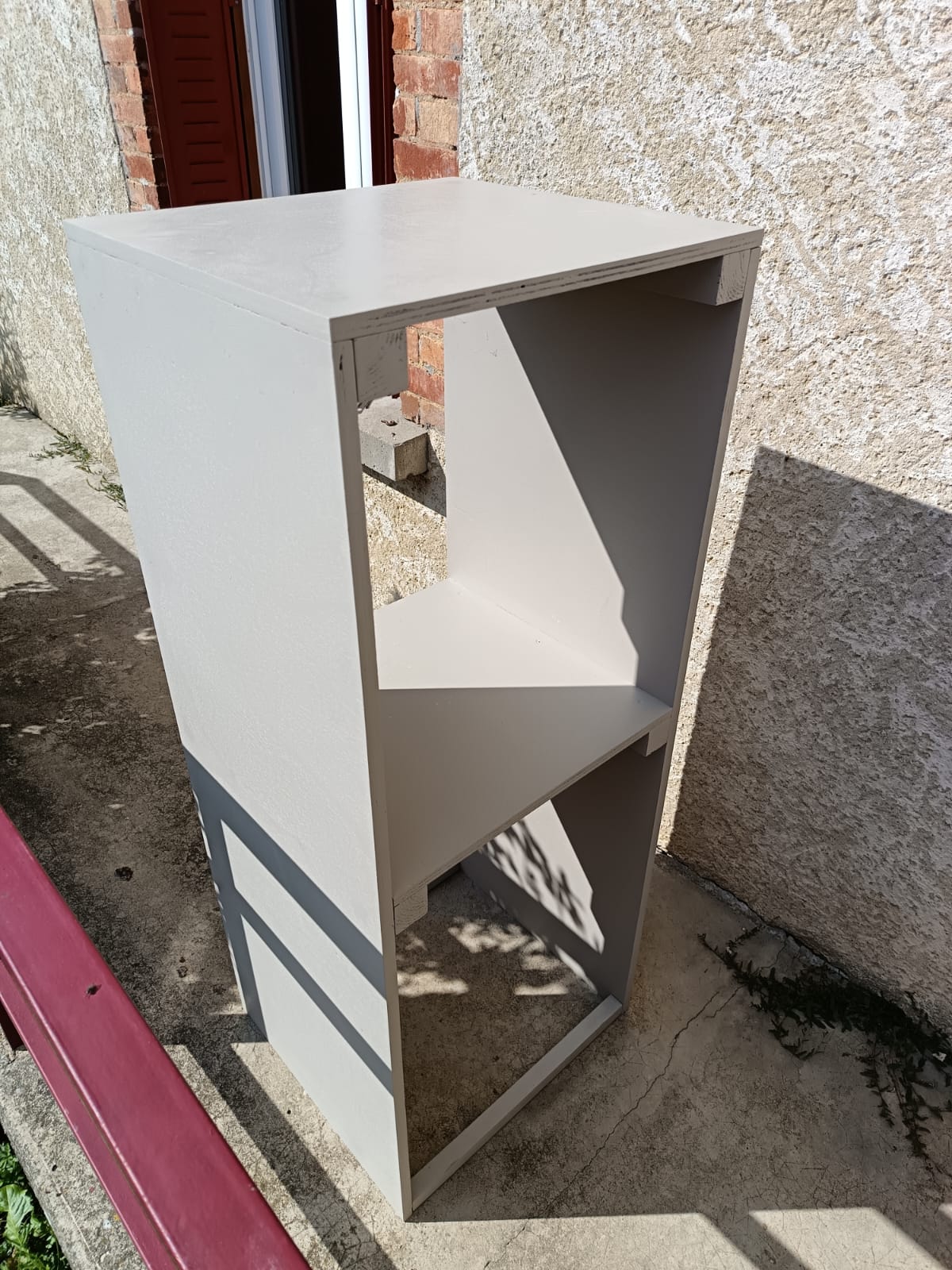 Donne une étagère grise claire suite à déménagement. Je m’en servais pour poser mes fermenteurs de bière (30 L et 27L) dessus. Donc chaque plateau supporte amplement 30kg (cp 15mm) Voici les dimensions: Hauteur 125cm Largeur 48.5cm Profondeur 44.5 cm Pas d’envoi, à venir chercher N’hésitez pas à venir me contacter pour plus d’info Bonne journée